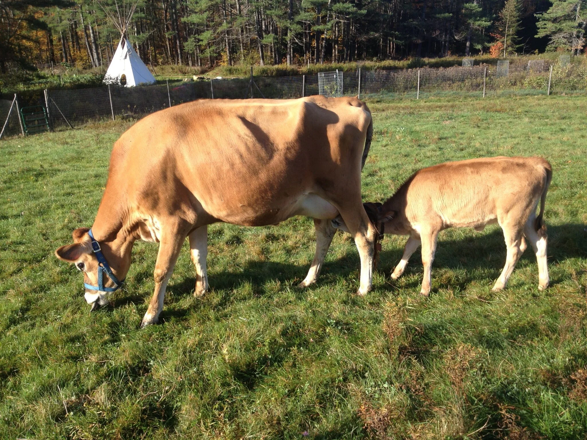 We have two diary cows names Jupiter and Rain; both of which are super sweet Jersey gals. we practice calf sharing for the benifit that our calves will grow healthier, allowing time to interact with other herd mates as well as being nurtured by their moms. We milk once daily giving more time for grazing. Our raw milk is nutrient-dense to help nourish our community. We also make yogurt and cheese with our cows milk.