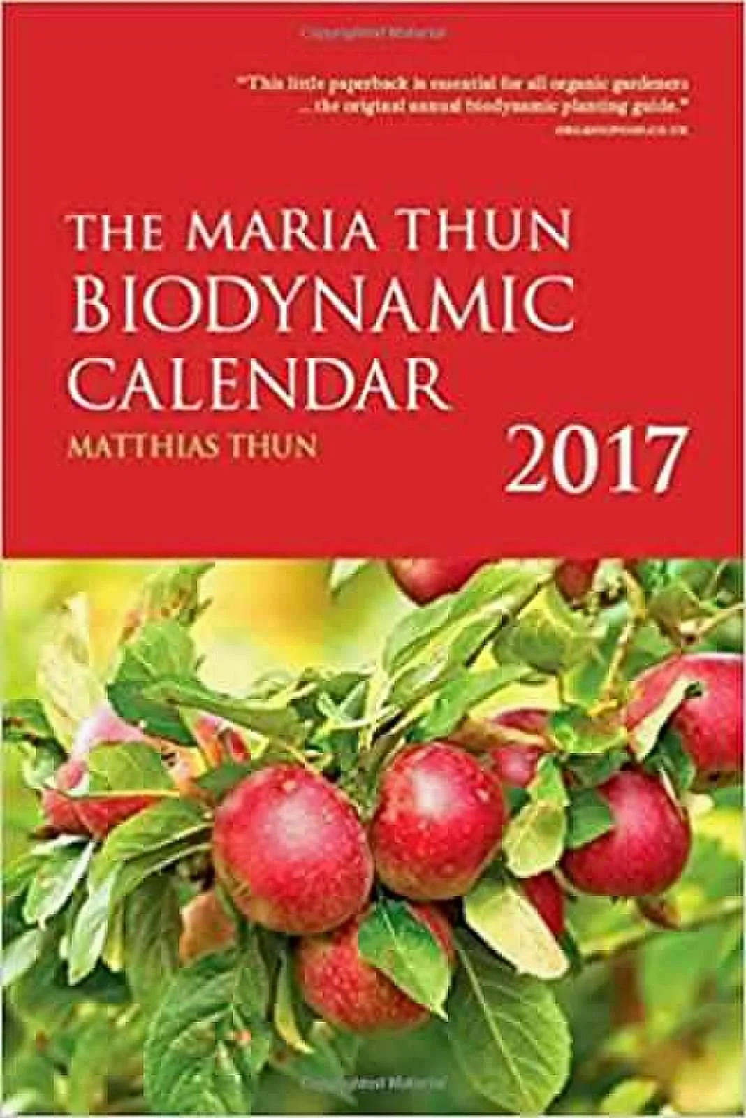 The 2017 Maria Thun biodynamic calendar, now in it’s 55th year, adapted for North America (EST) dates and times. This useful guide shows the optimum days for sowing, pruning, and harvesting various plant-crops, as well as working with bees. It includes Thuns unique insights, which go above and beyond the standard information presented in some other lunar calendars